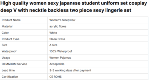 High Quality Women’s Sexy Japanese Student Uniform 2P Cosplay Lingerie – Deep V Backless