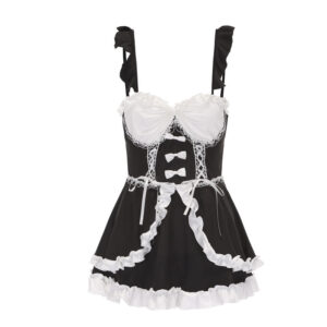Plus Size Satin Sexy Maid Uniform Suit 5314 – XXL Deep V Backless