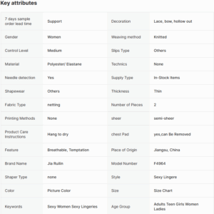 Women’s Sexy Suspender Nightgown – ODM OEM, Soft Gauze Lace Bow